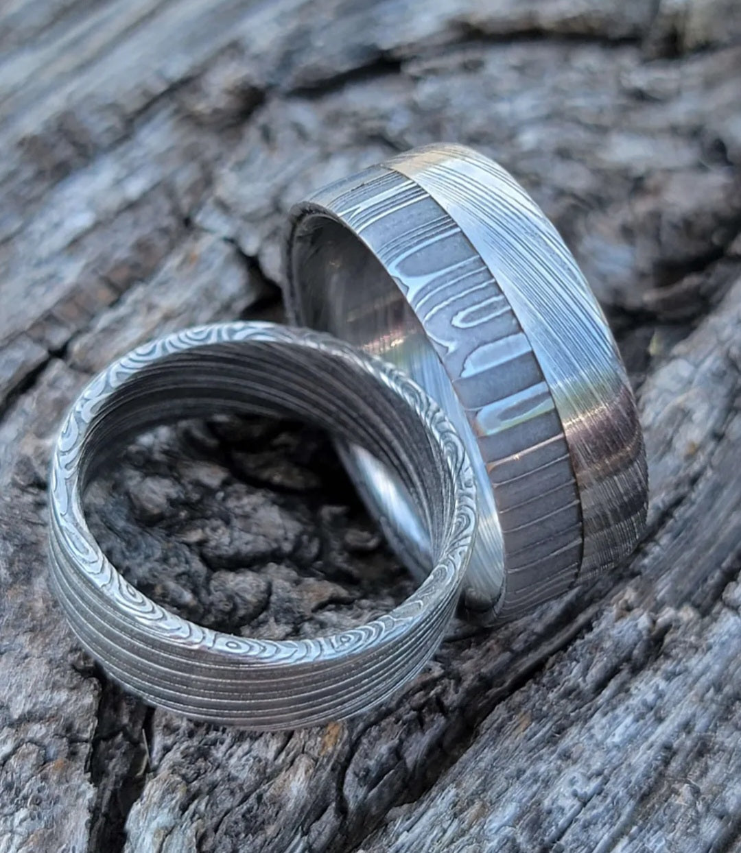 This is our strongest and highest quality of ring so far. This is a STAINLESS AUSTENITIC hypoallergenic Damascus ring, we use very high quality stainless Damascus material in our rings. After extensive personal testing we are confident when we say, with proper care, these rings will never rust on you. If your ring gets a lot of scratches or you ever have any other problems with it simply let us know and we would be happy to fix it for you! Adding a titanium liner to this stainless Damascus ring reinforces the ring and makes it even stronger, more wear resistant and more comfortable to wear!